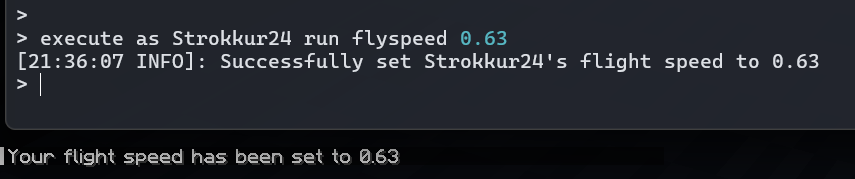 但该命令实际上并没有设置执行玩家的飞行速度。为了做到这一点,我们需要在其上添加一个执行器,像这样: