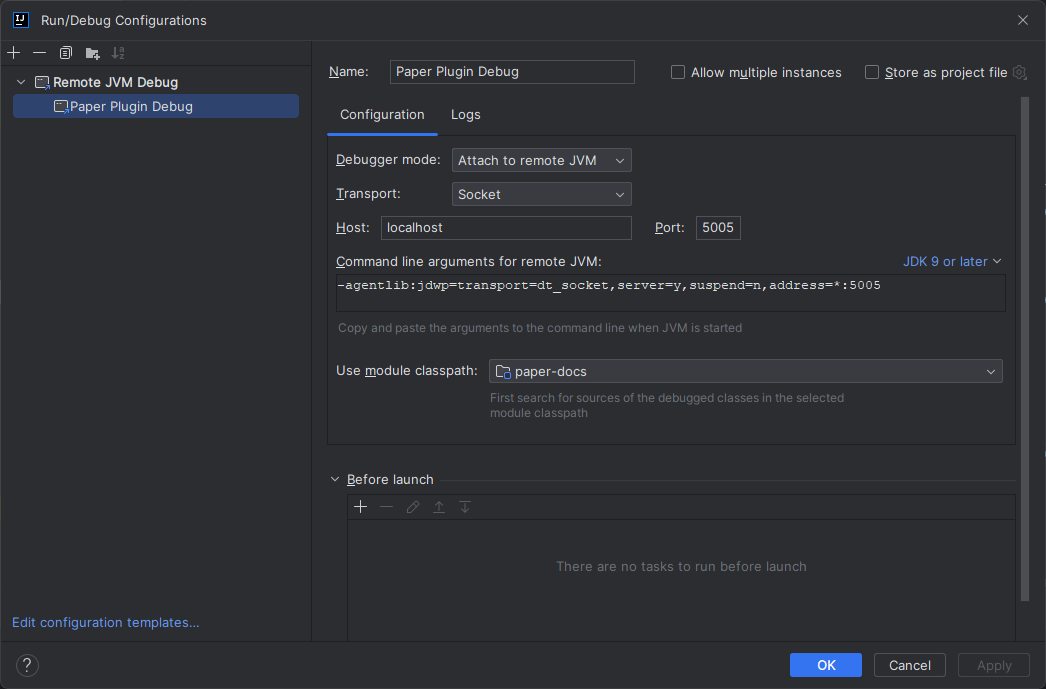 Direct debugging will allow you to run the server directly from your IDE, and will allow you to use breakpoints and step through your code. We can achieve this by using JPenilla's Gradle plugin to run the server directly from the IDE. See here for instructions on how to set up the plugin.